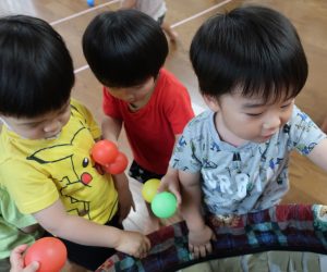 ボールを雨に見立てて上から降らすと大喜びなりす組さんでした(≧▽≦)