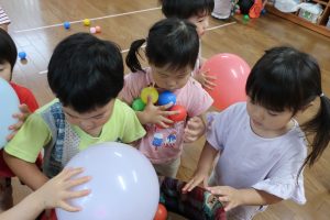 風船とボールをたくさん入れて…。