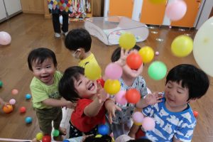 お部屋ではボールと風船を使って遊びました。