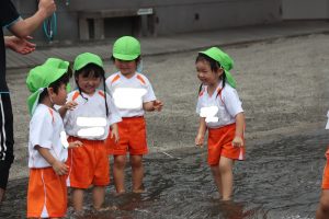 心地よい温度で「気持ち~」と寝転んだり、掛け合いをしたり、虫かごに水を入れて遊んでいる姿が見られましたよ!