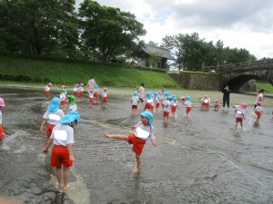 石橋記念公園に着き、準備体操をしてから水遊びをしました!(^^)!