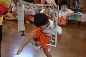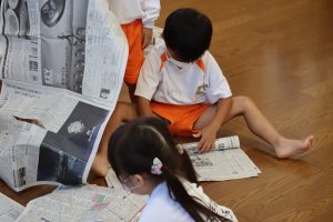 最初は新聞を使ってゲーム遊び\(^o^)/