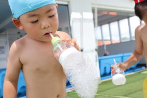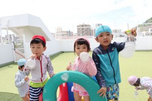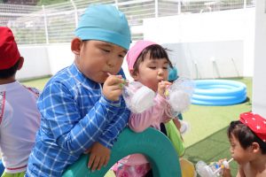 今日はプール遊びの前に