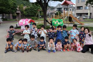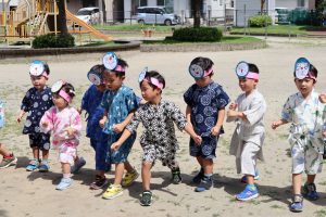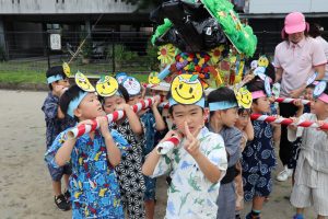 子どもたちも夏祭りごっこの準備をして、