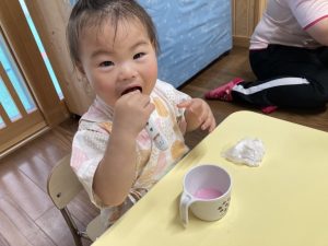 園に帰って未満児さんはかき氷を食べ夏を感じました🍧