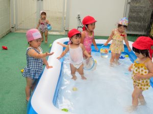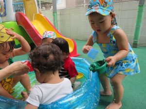 プール遊びは最後でしたが、暑い日は続くので水遊びをして暑さに負けないよう元気いっぱい遊んでいきたいと思います(*^▽^*)