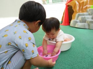 玩具を使って遊んだり、水を集めたりと遊んでいました💛
