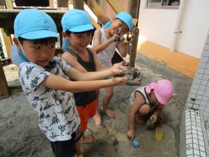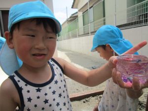 水がなくなってくると、『カラカラになってきてるよ!』と発見する子、