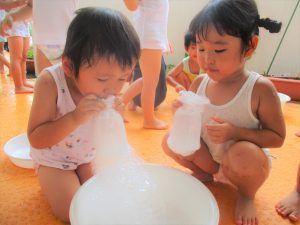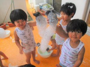 出てきた泡を触ってみたり・・・