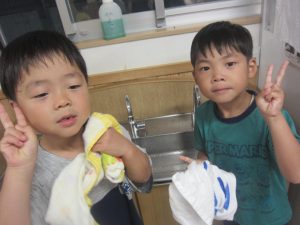顔も自分たちで洗いましたよ⭐