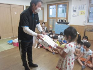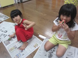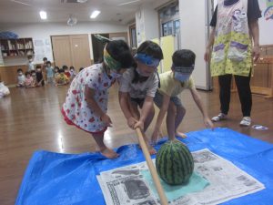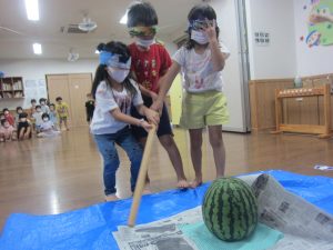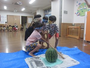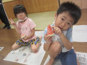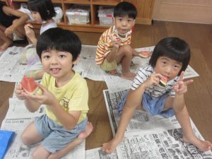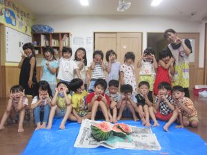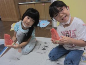 「先生が割ってくれたスイカ、おいしい~(^ω^)」と言ってくれる