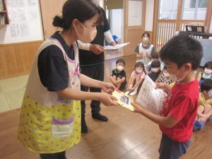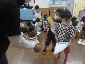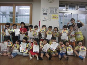 最後に終わりの会をして、賞状とフォトフレームをもらいお泊り保育は
