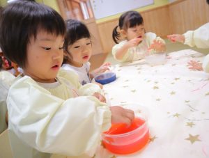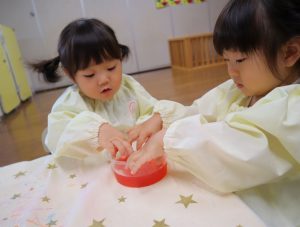 今日はお部屋の中で寒天遊びをしました(^▽^)/