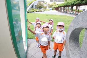 環境未来館横の芝生でお弁当を食べました\(^o^)/