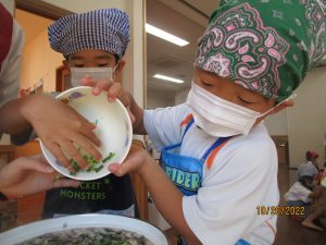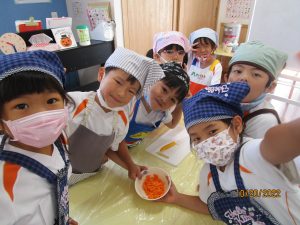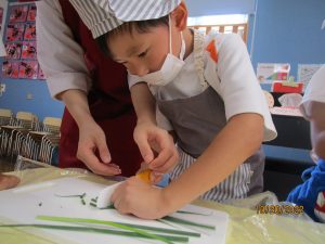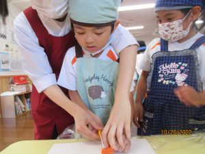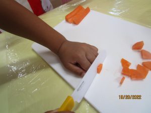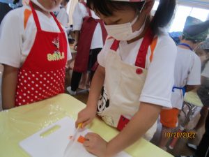お泊り保育の頃を思うと、包丁の使い方がとっても上手に