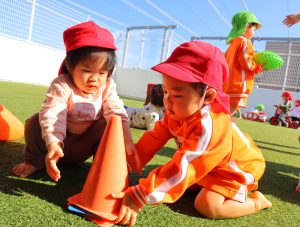 ☆コーンを並べて、お友だちと