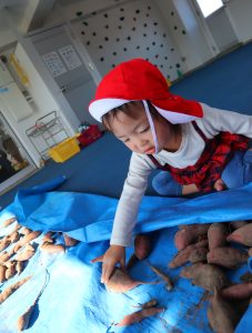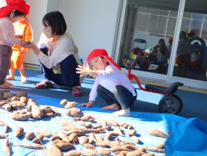 最後は、屋上に干してあるお芋が