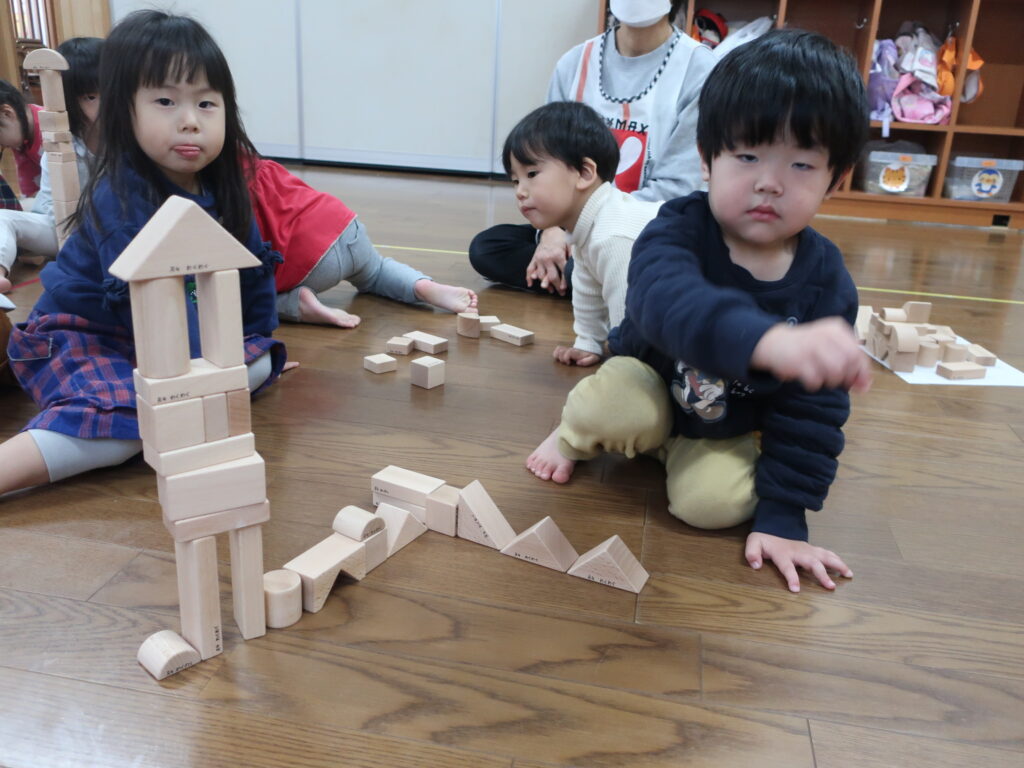 お部屋には様々な形の積み木が来ました(●^o^●)