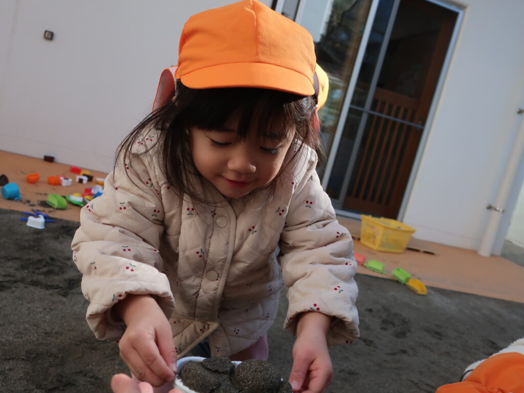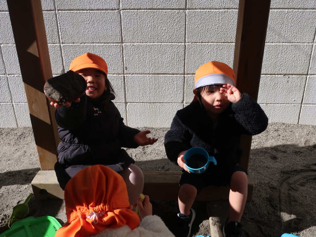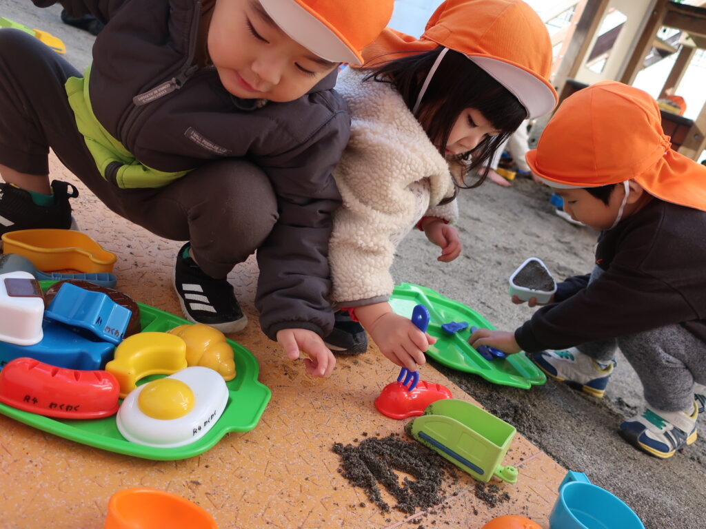 園庭ではおままごとセットに大喜びな子どもたち!
