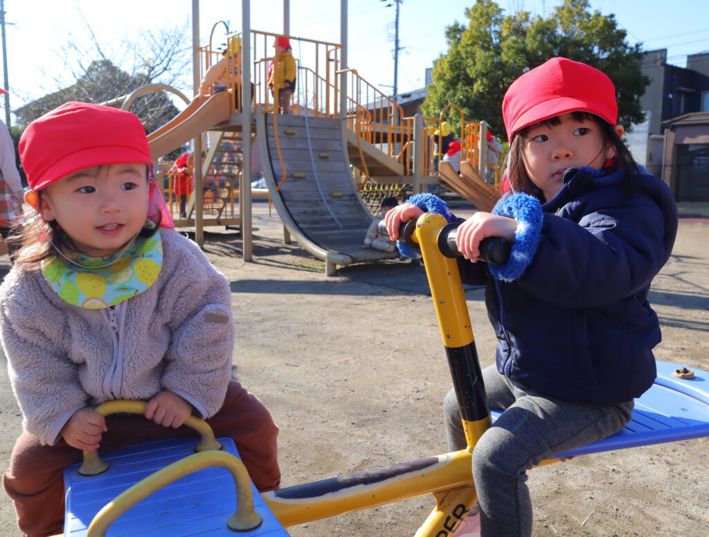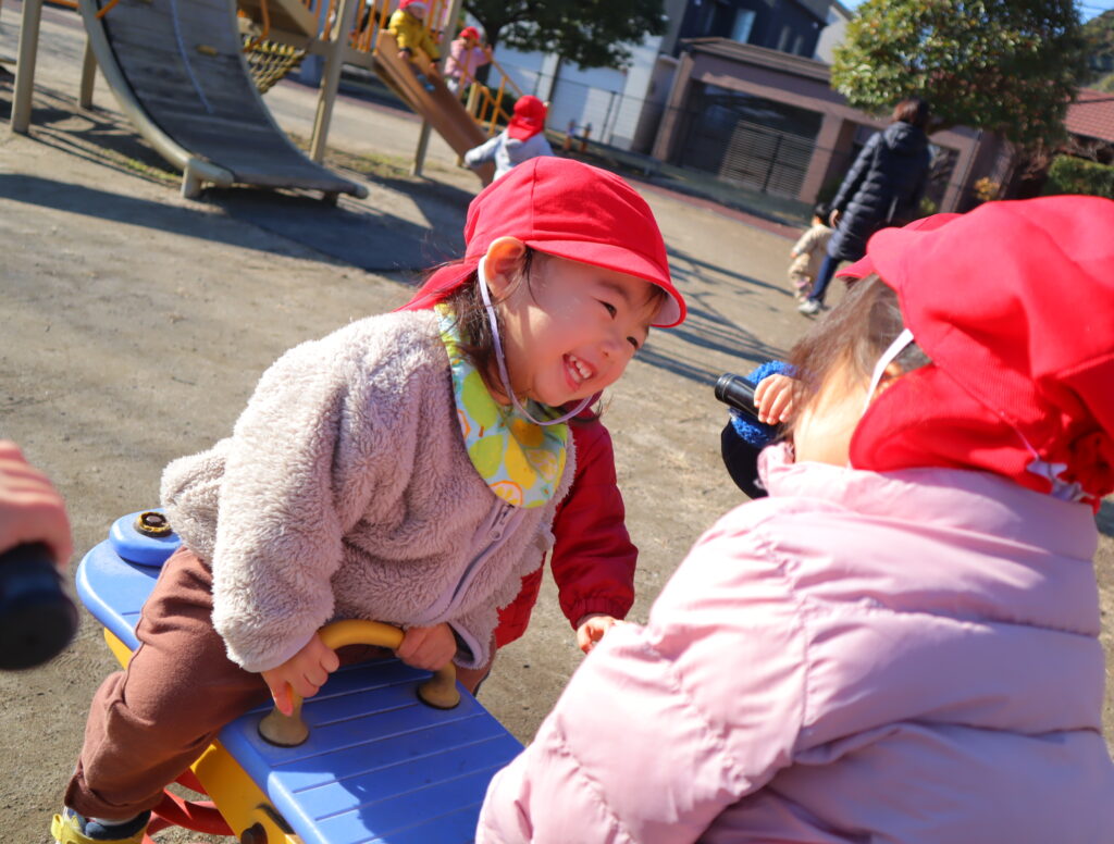 シーソーに乗ったり、すべり台を滑ったり...