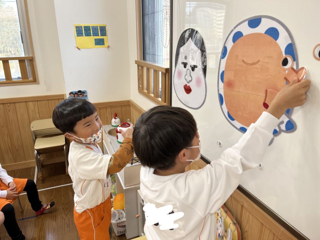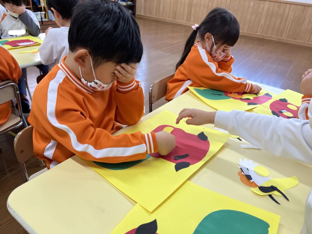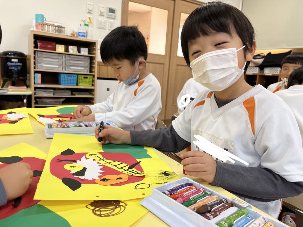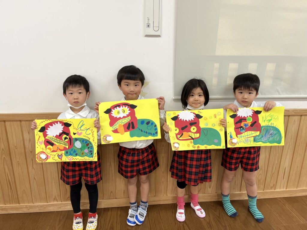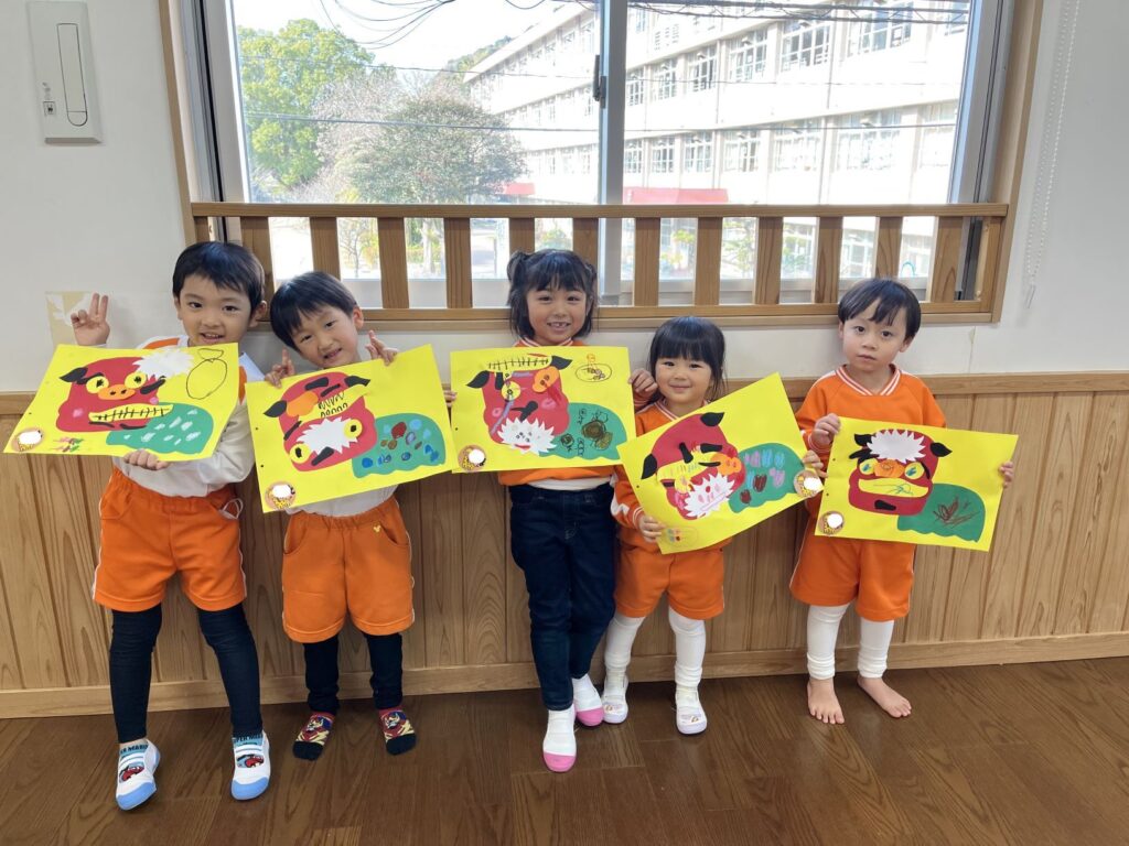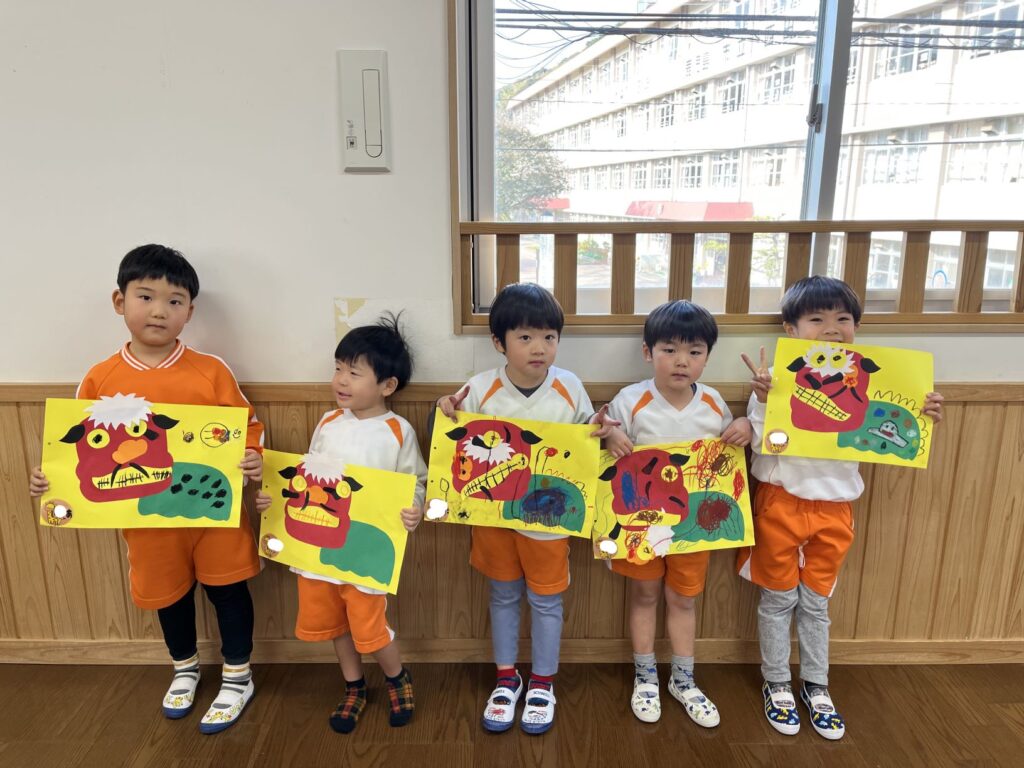 そのまま、1月の制作で獅子舞の福笑いに挑戦!