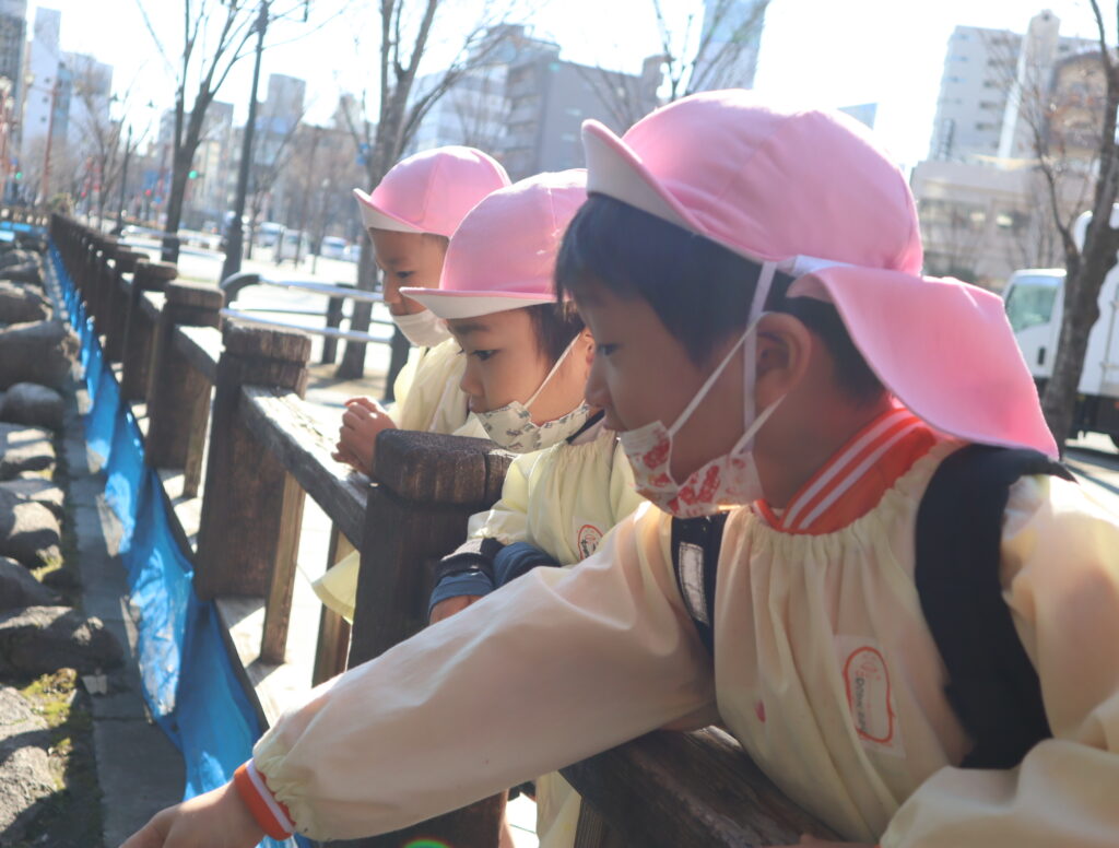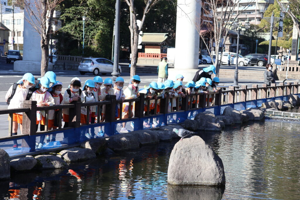 \大きな鯉に大興奮の子どもたち>゜))))彡/