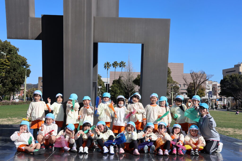 鯉に別れを告げて、いよいよ凧あげです(^O^)/~~