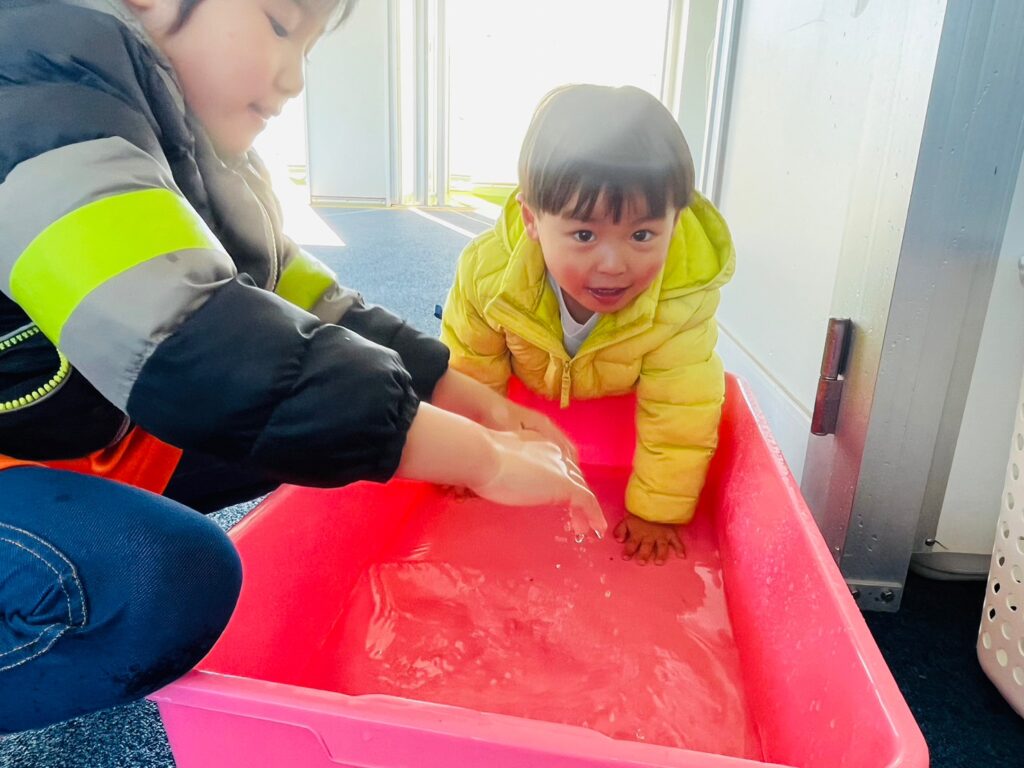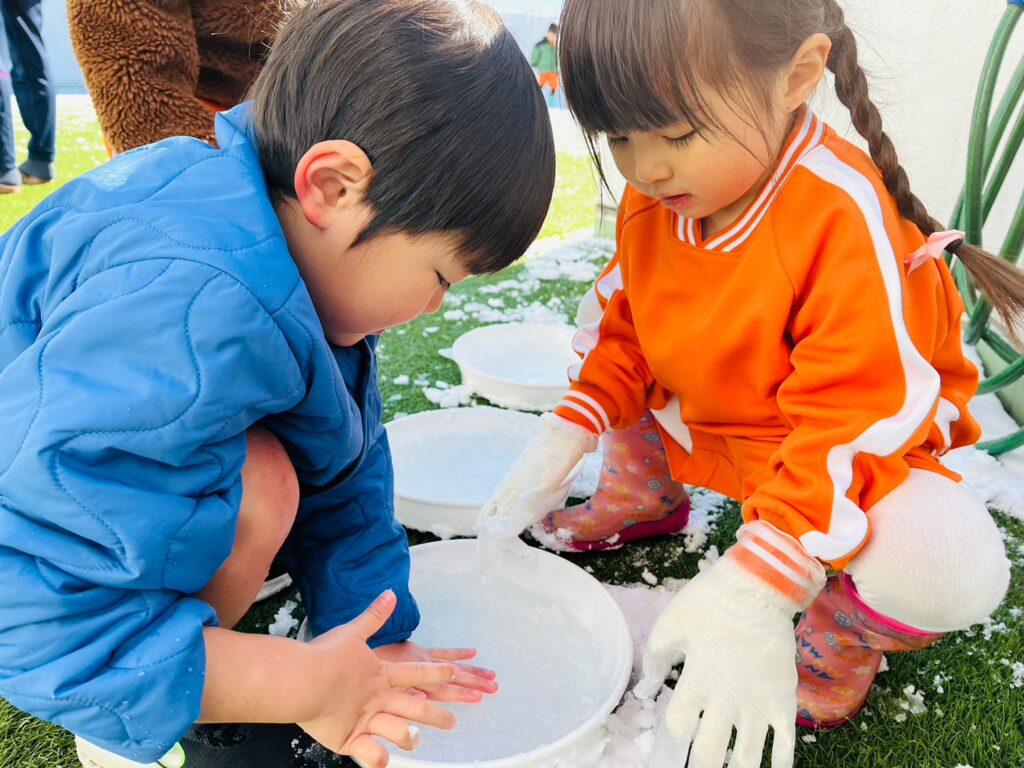 固まっているお水に嬉しそうな子どもたちでした!