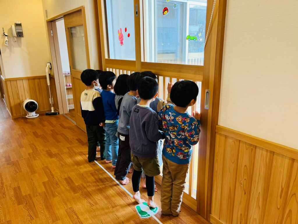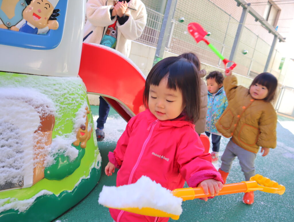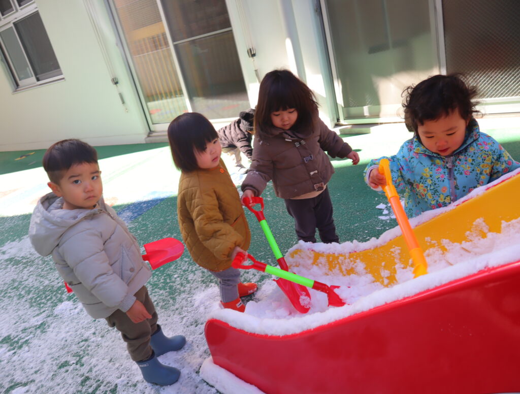 昨日から、雪が降りきりん組さんとぞう組さんは、