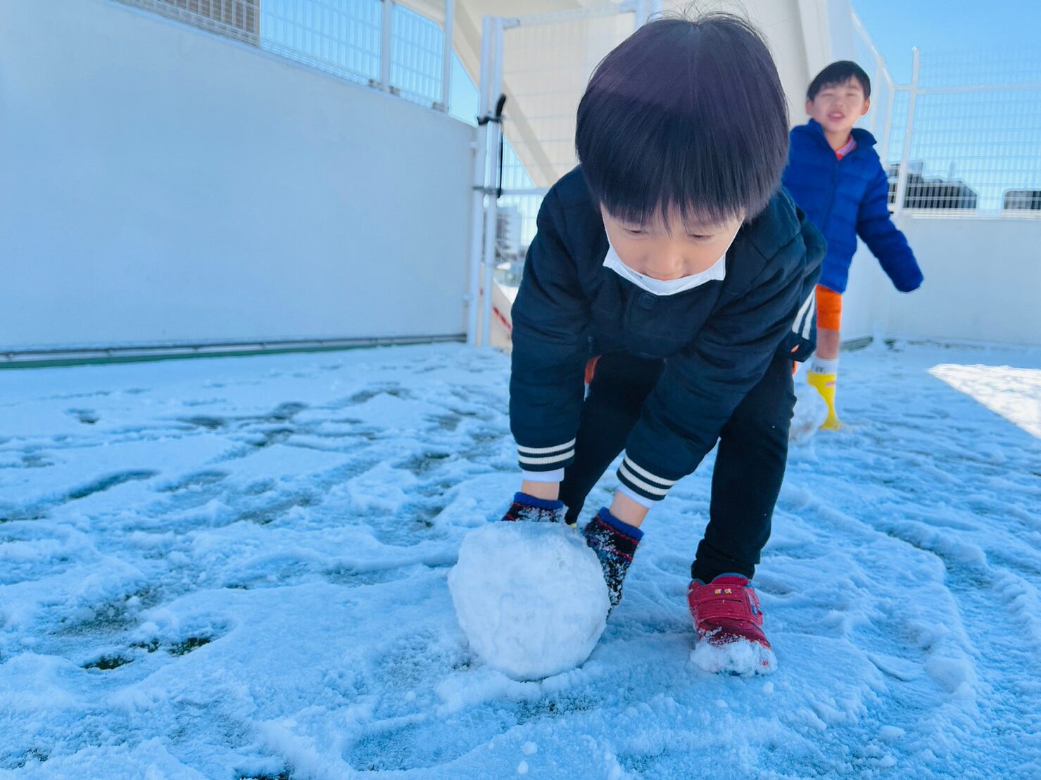 屋上で雪遊びを楽しみました⛄💕