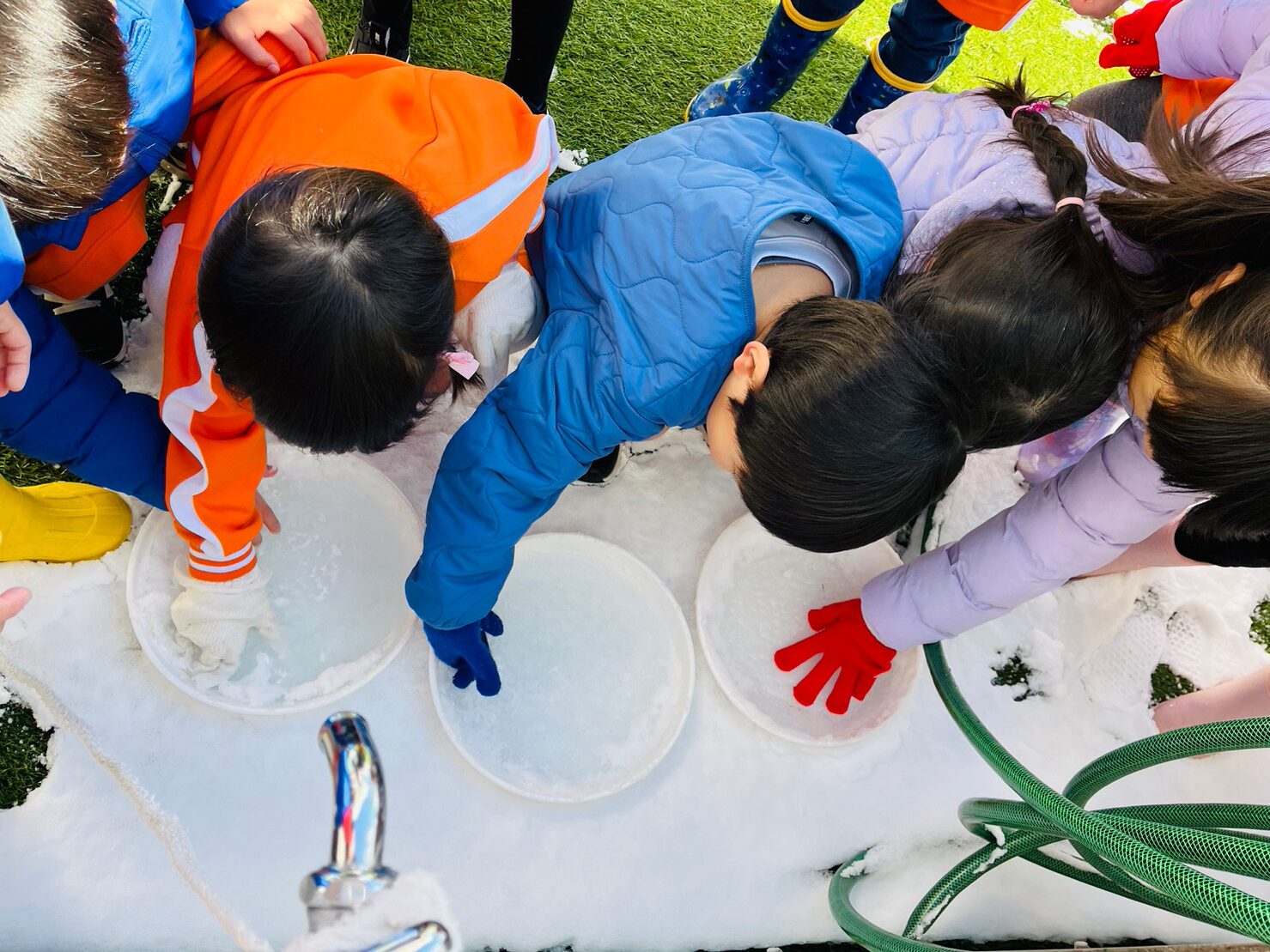 凍ってるかな~と気になってしかたがない子どもたち♡