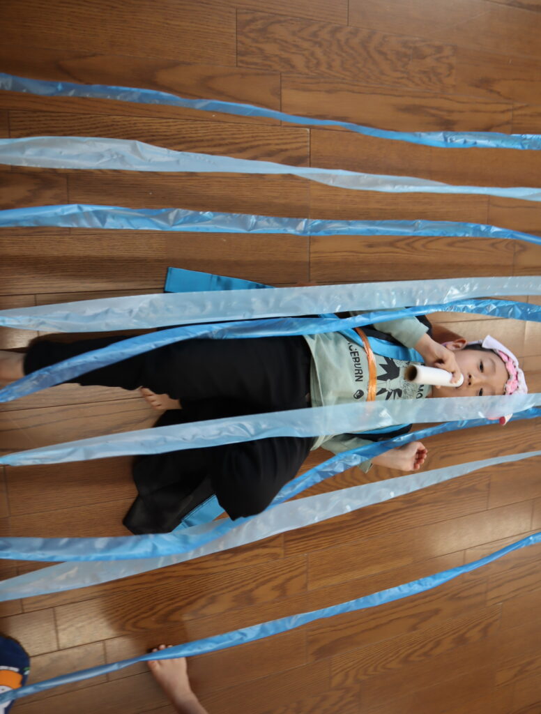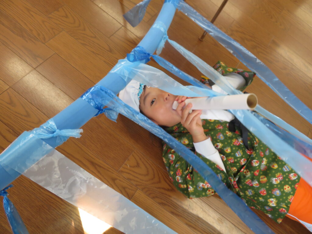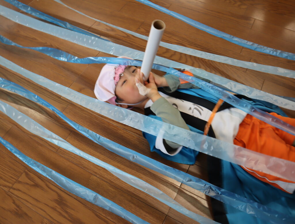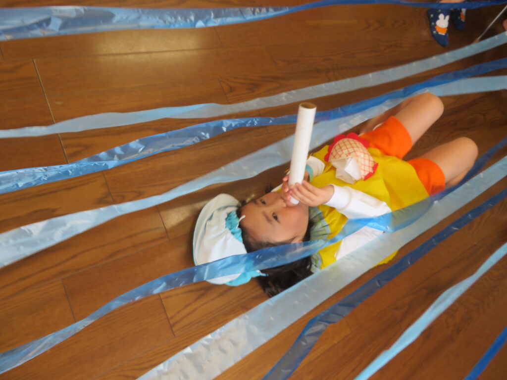次は【すいとんの術】水に潜って、筒を使って呼吸をしながらすすんでいきます!