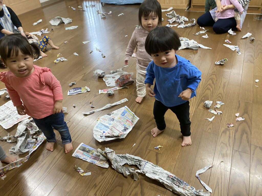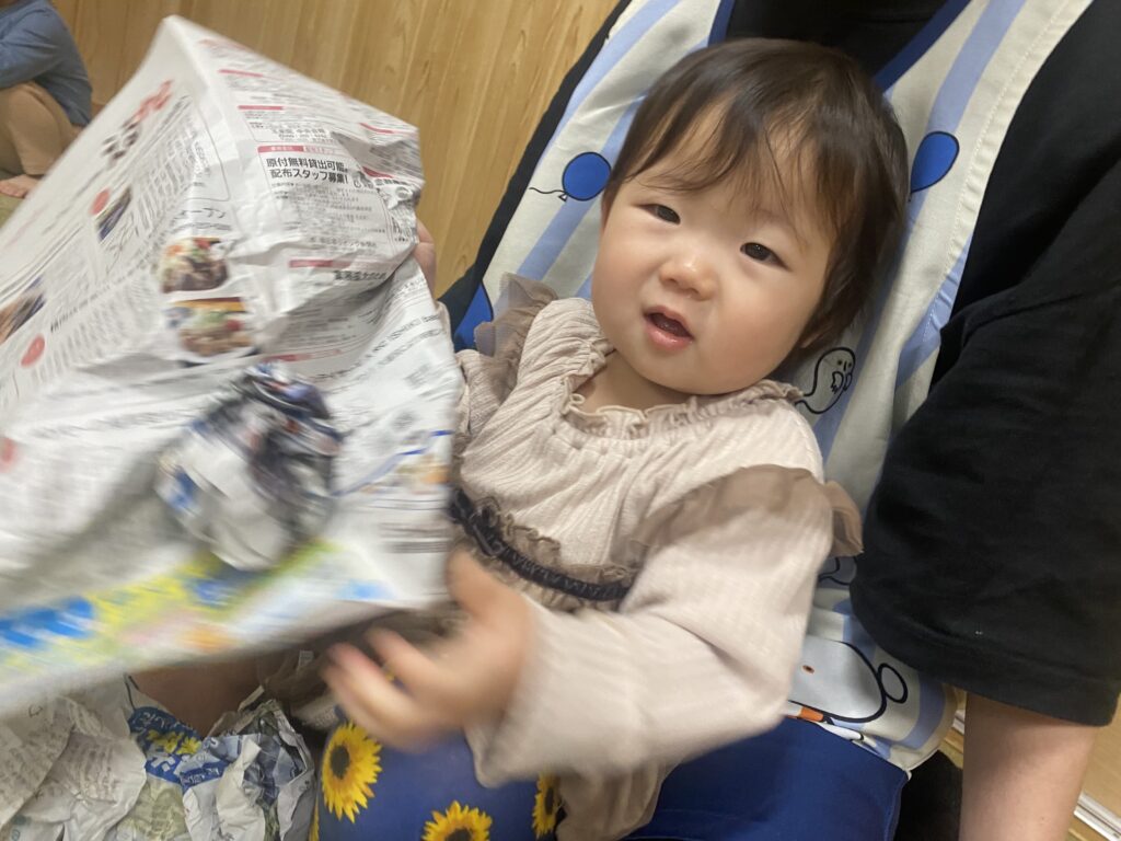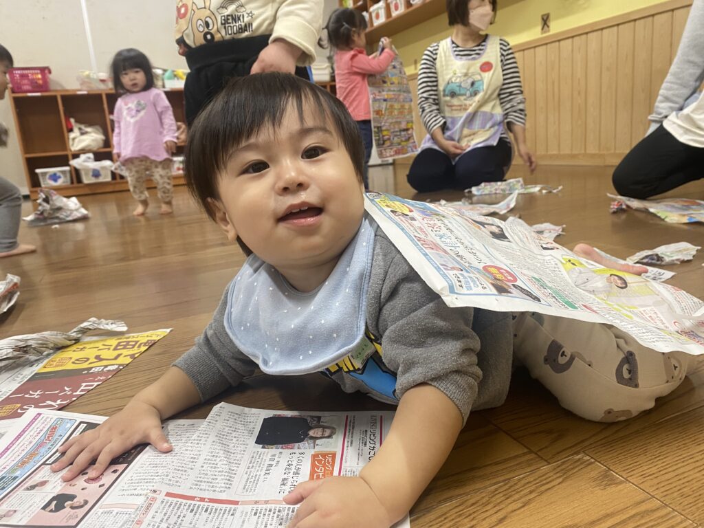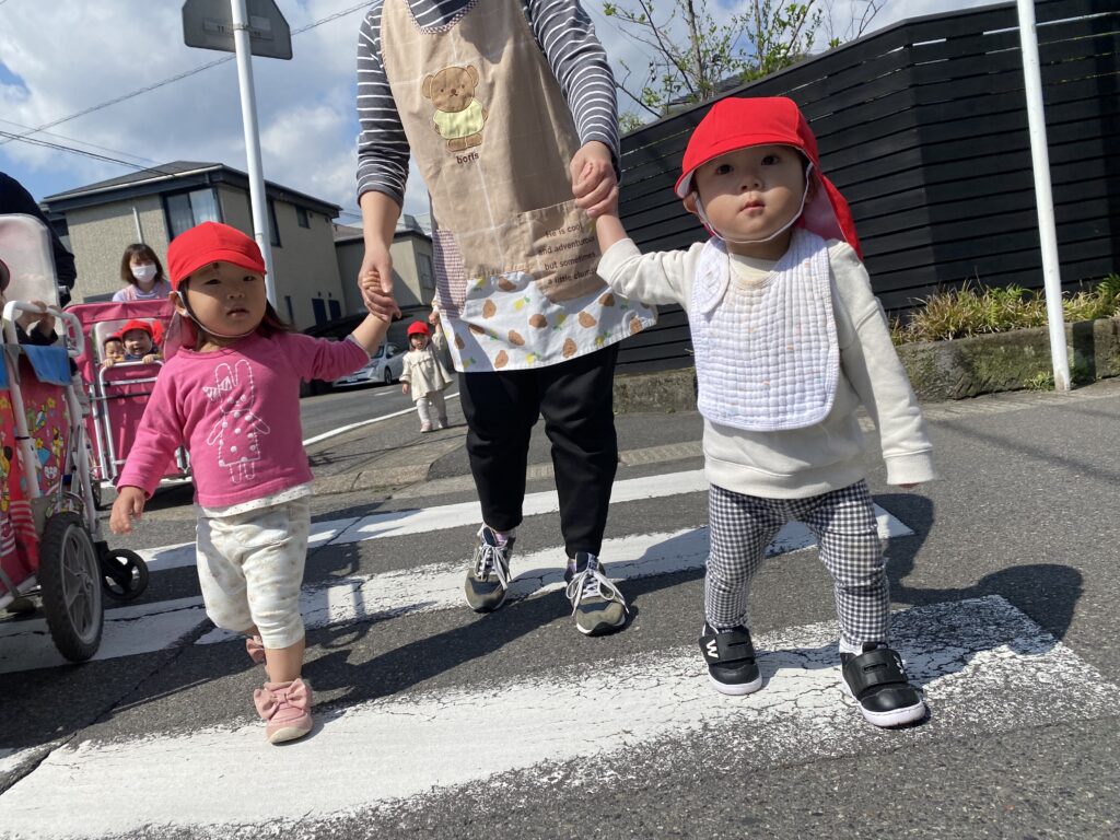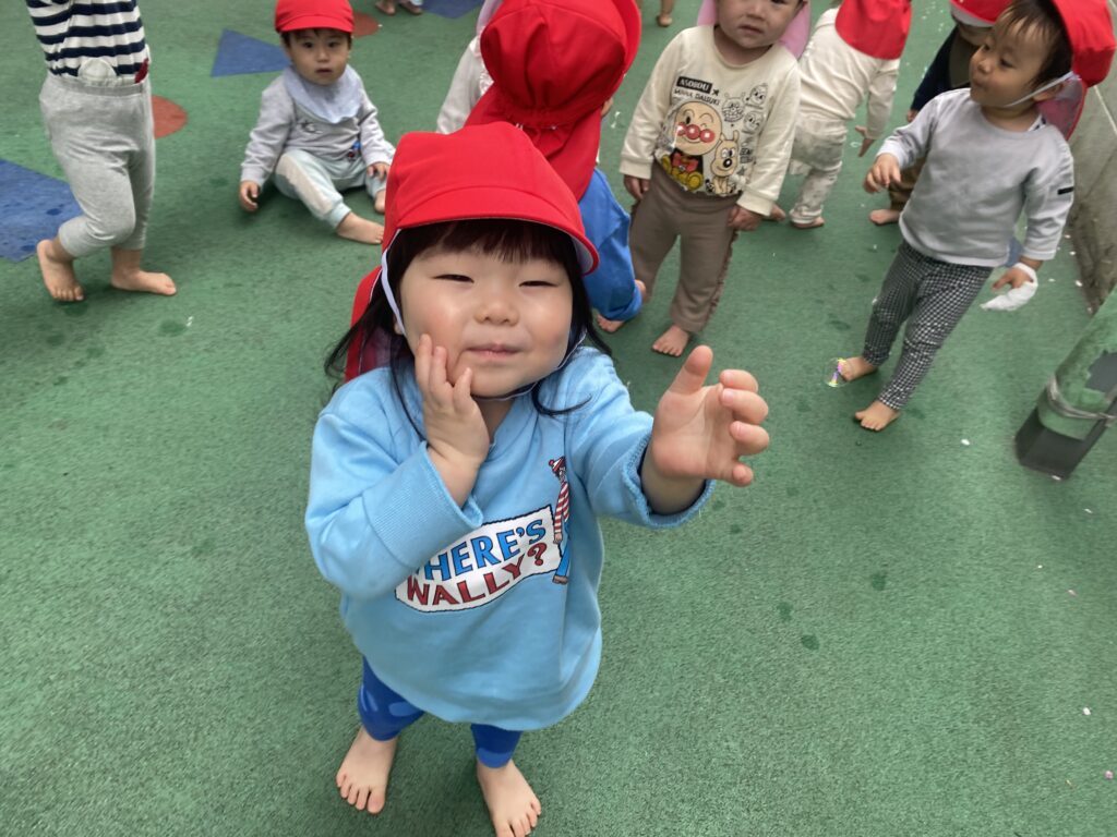 未満児園庭でアンパンマン遊具で楽しく遊んで