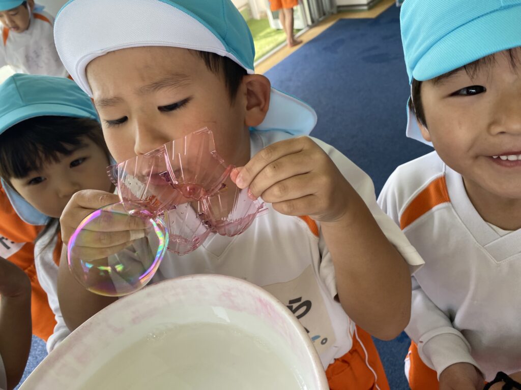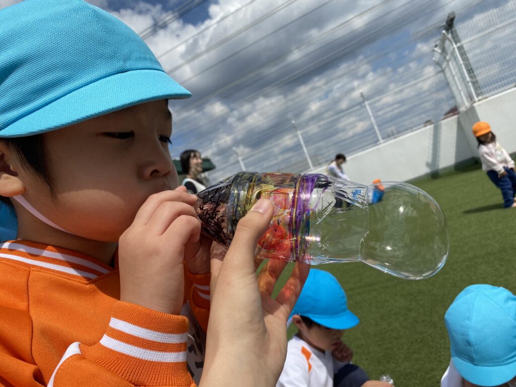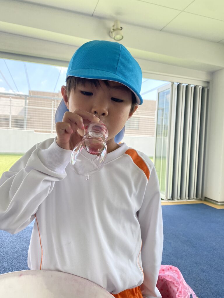 モールやストロー、廃材を使って吹き具を作り、シャボン玉ができるか実験👀✨