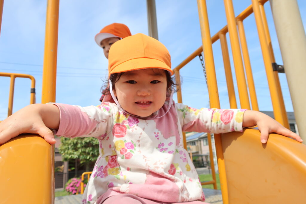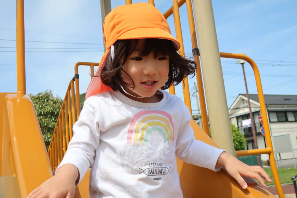 すべり台を滑ったり...