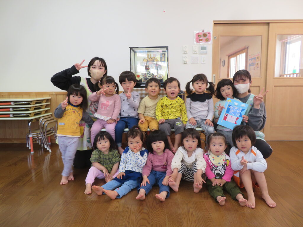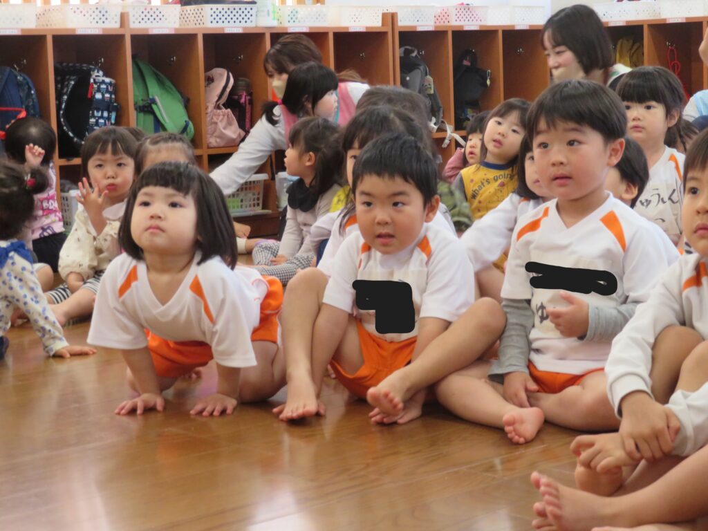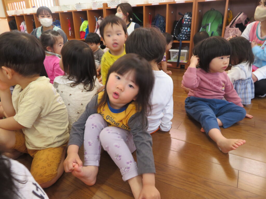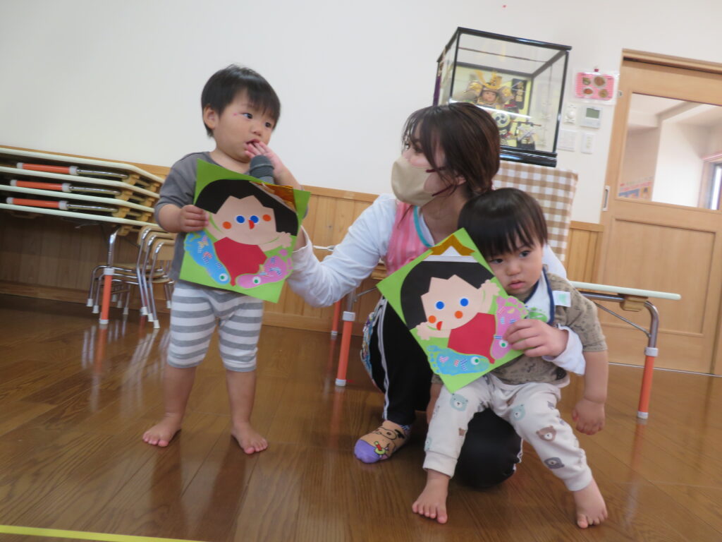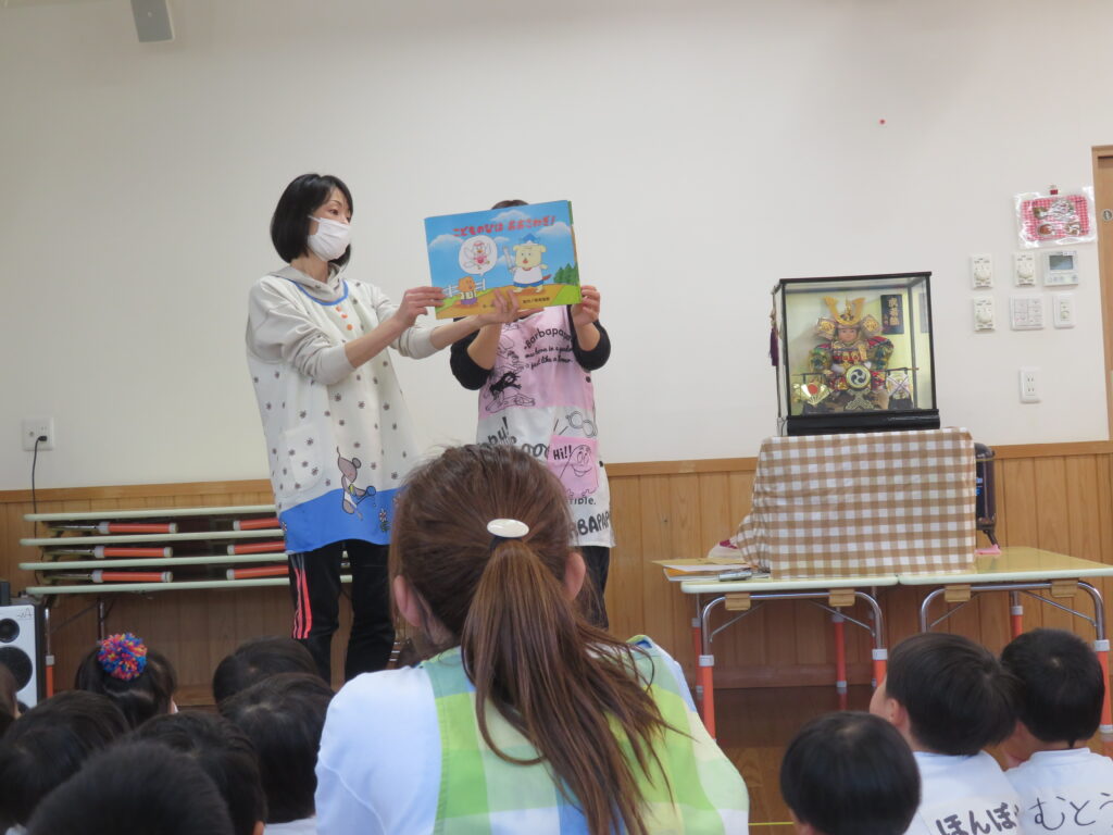 指遊びをした後は、こどもの日についての紙芝居を見ました。