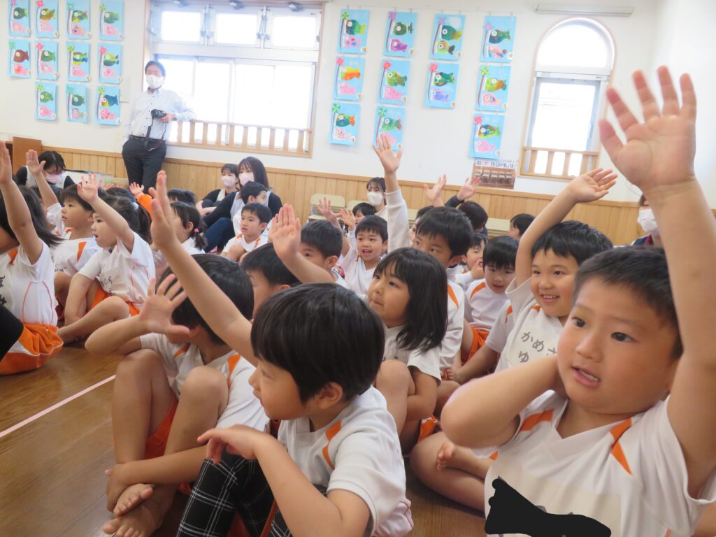 次にこどもの日についての由来を聞いて、こいのぼりクイズをしました。