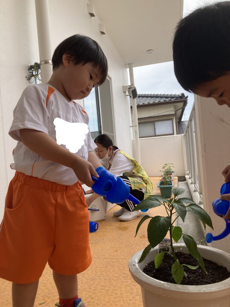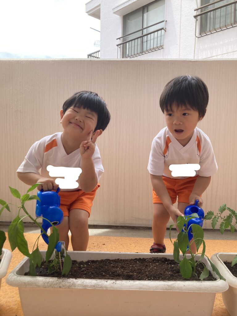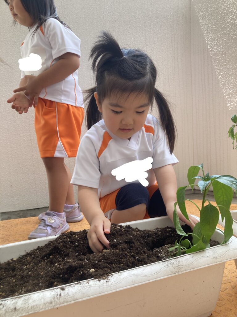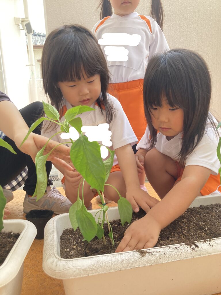 先日、みんなでトマトとピーマンの苗を植えました!