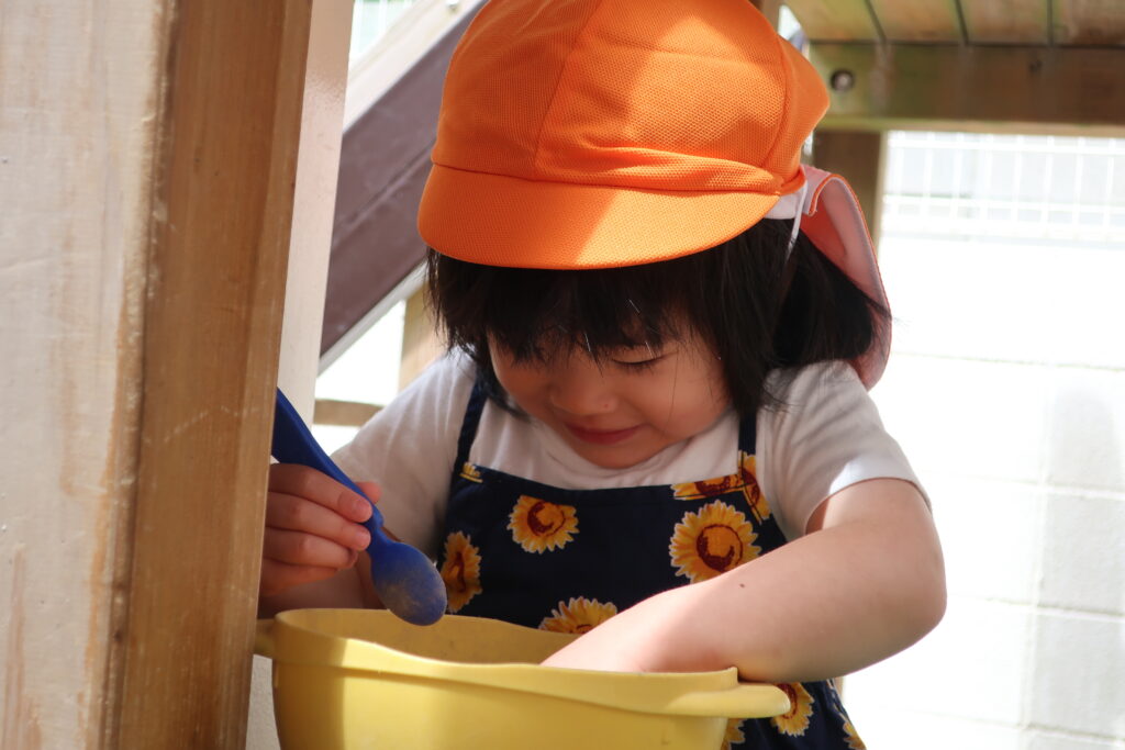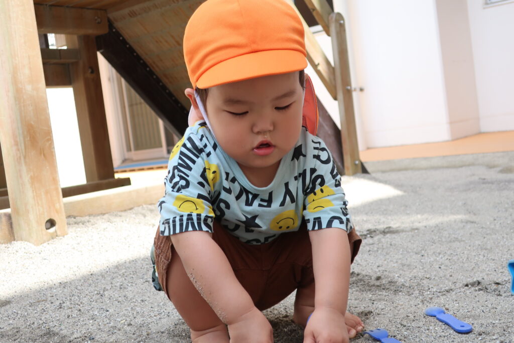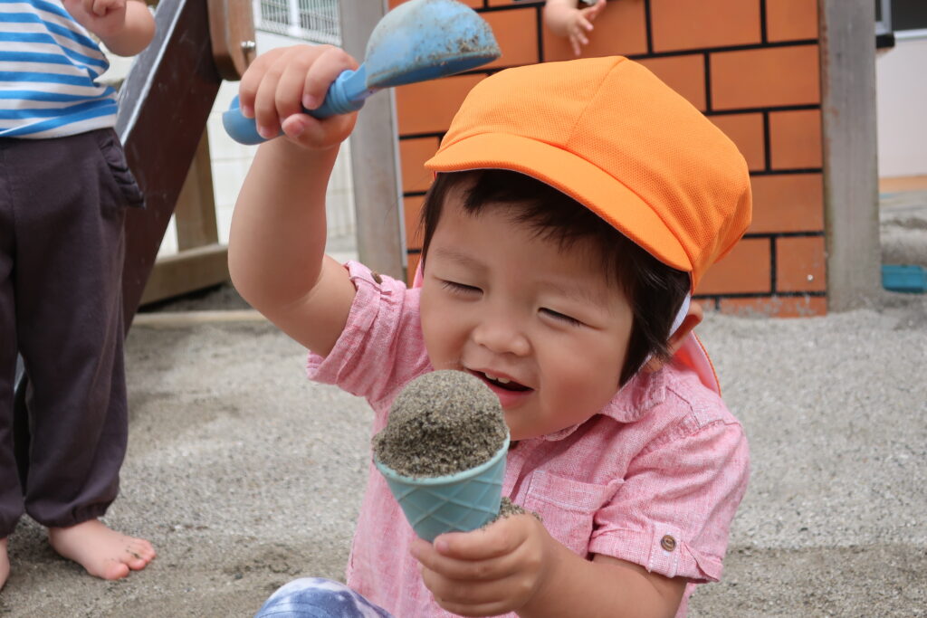 さっそくお外に出ると、自分の好きな砂場セットを見つけて遊ぶりす組さん😊