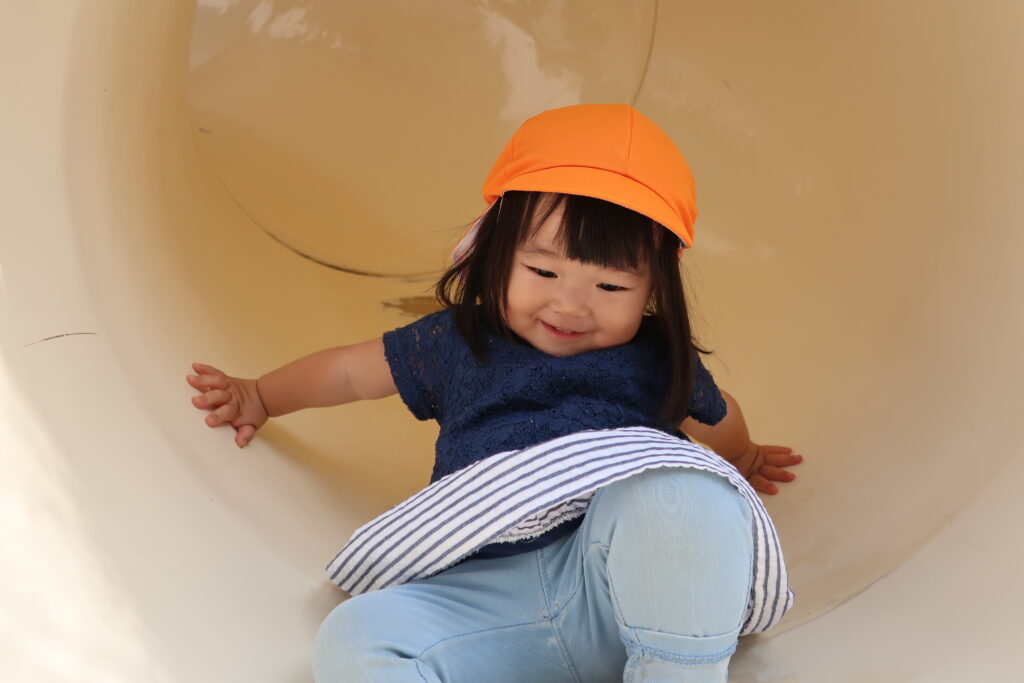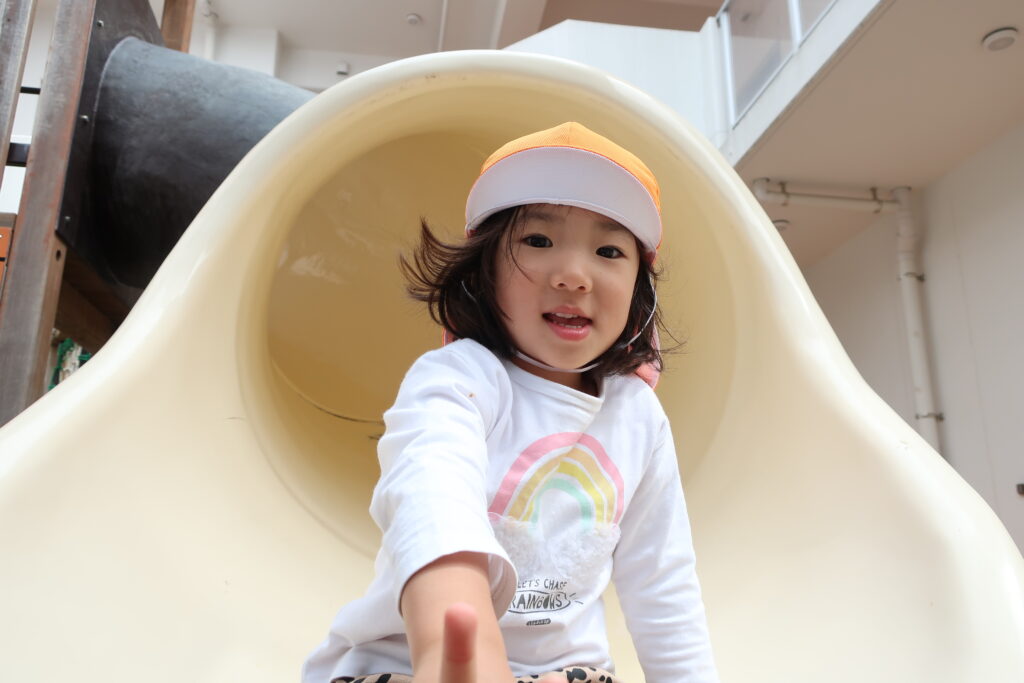 滑り台をしたり...