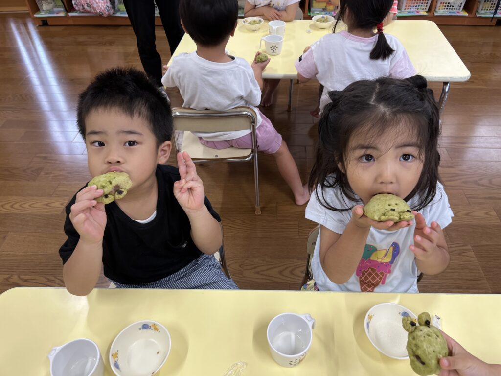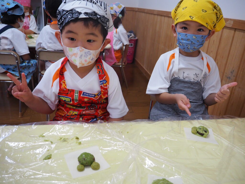 自分たちで作った、かえるまんじゅう