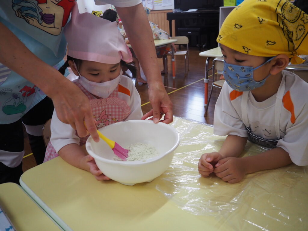小麦粉やベーキングパウダーを混ぜて