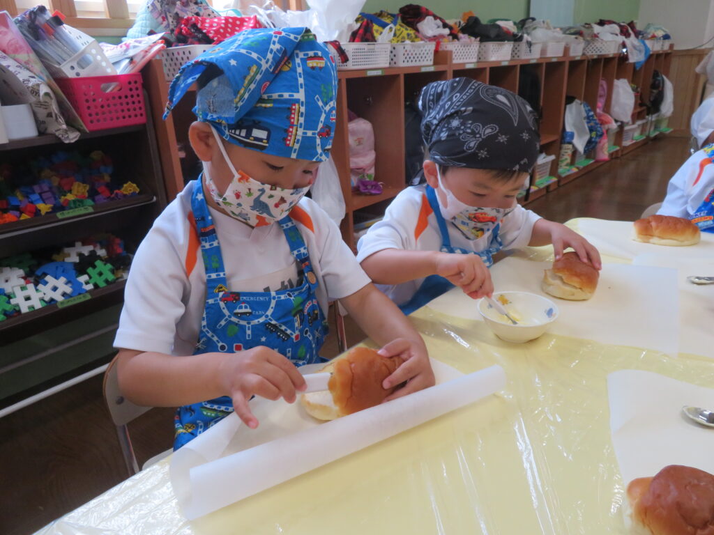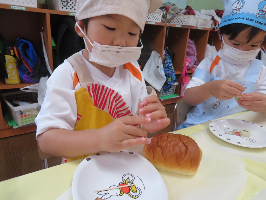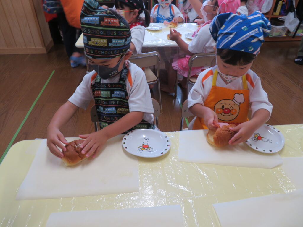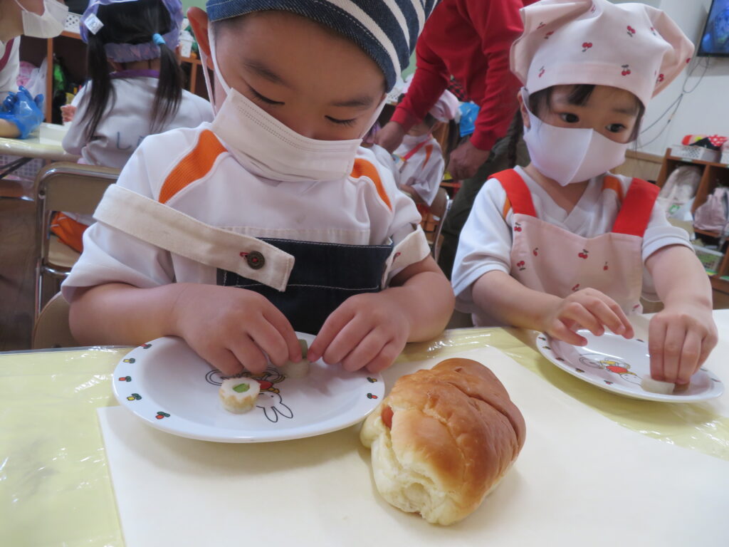 出来上がった❝カエルパン❞は給食で美味しく食べましたよ🥄
