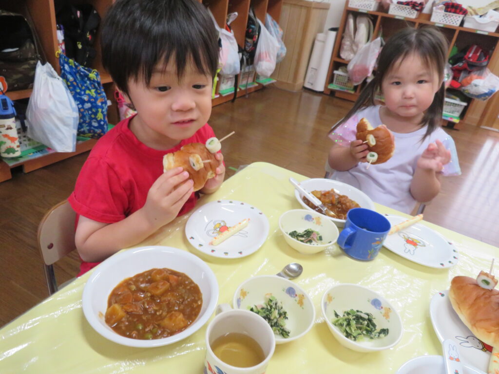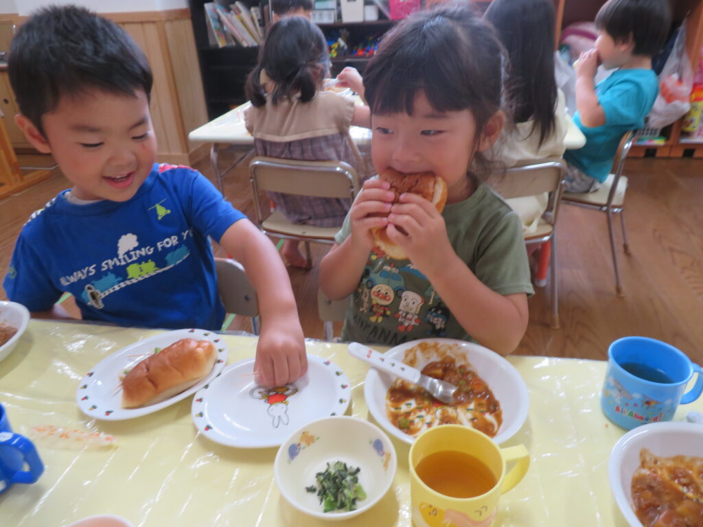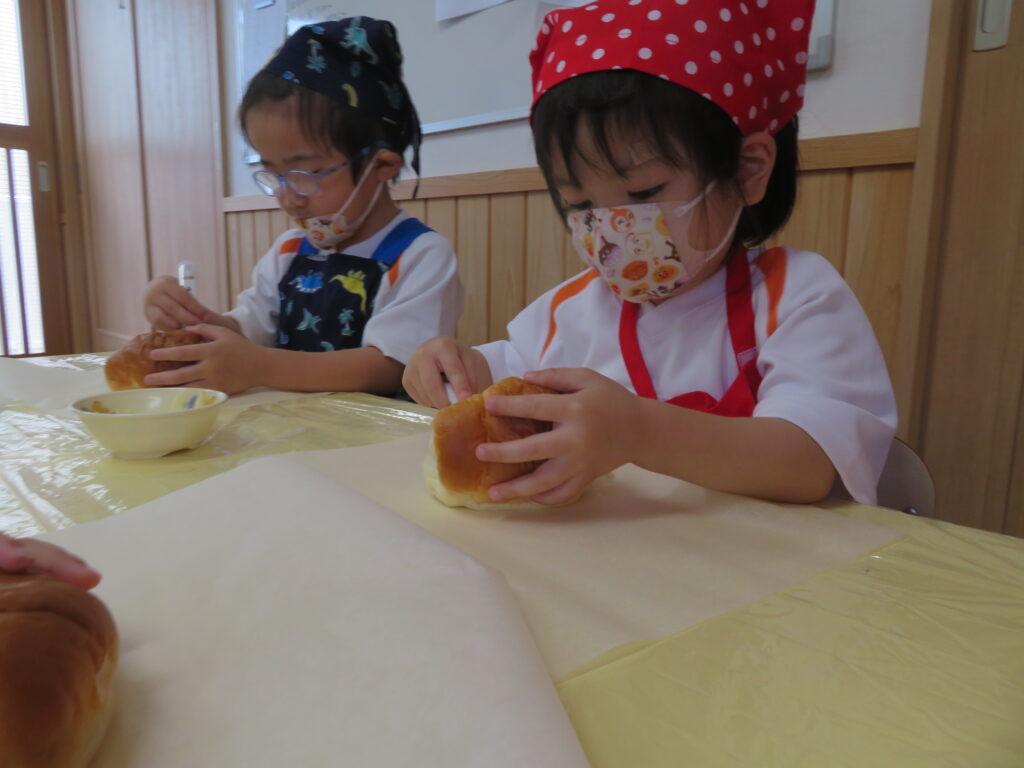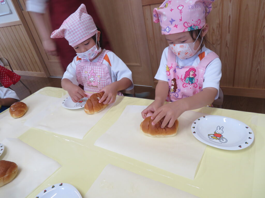 出来上がった❝カエルパン❞は給食で美味しく食べましたよ🥄