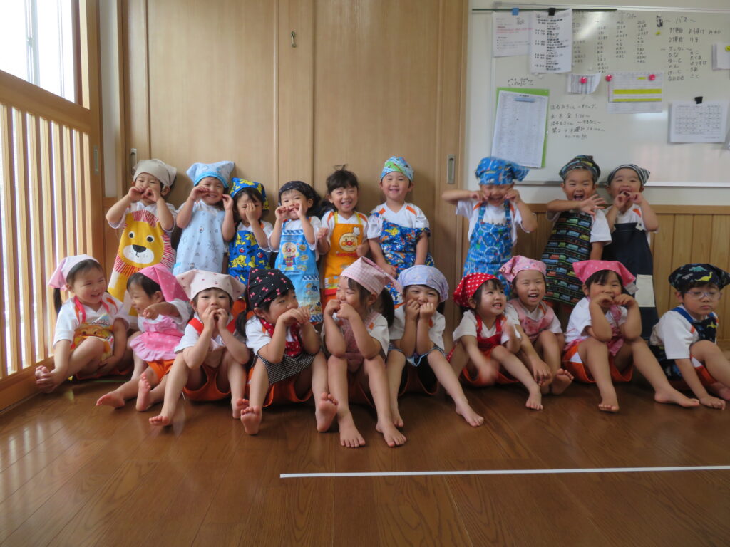 エプロンを着るとき、『かわいいね』や『これどうするの?』と嬉しそうな子どもたち\(^o^)/